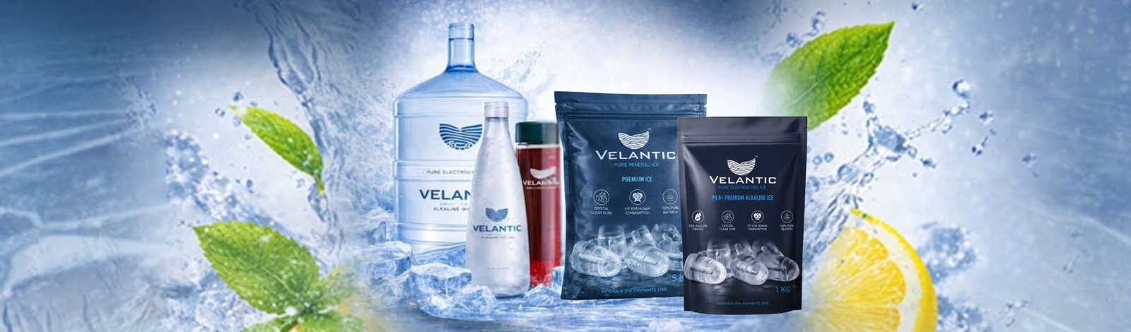 Velantic delivers premium hydration with crystal-clear ice and balanced alkaline water — crafted for purity and a refined refreshment experience.